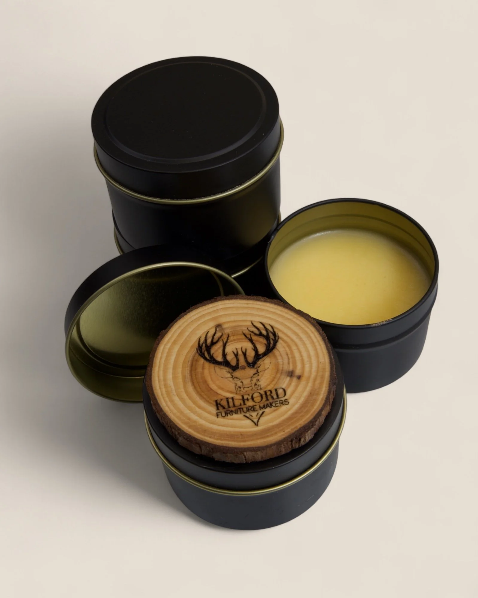 Our own KFM Board Butter is a nourishing, food-safe finish designed for chopping boards, wooden toys, and any pieces made to be handled and loved. Made in-house from a simple blend of beeswax, lemon oil, and a hint of mineral spirits, it revives tired wood, protects against wear, and draws out the grain’s natural depth—all with a soft sheen and a gentle citrus scent.
